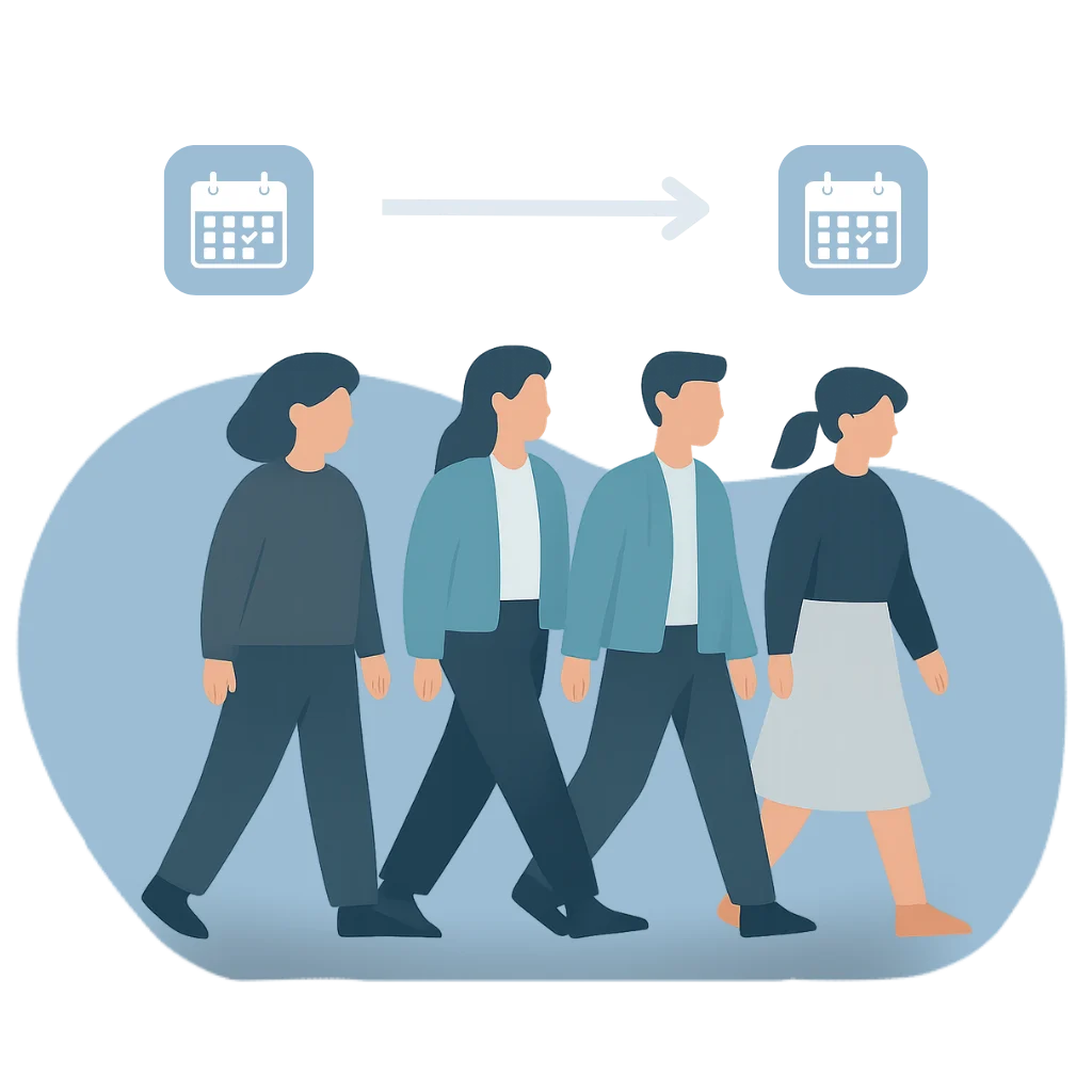 While part of the users have already been migrated and the other part is still working on the old system, teams are able to schedule across the environments. When a user is migrated, private settings such as private groups and language continues to be available.