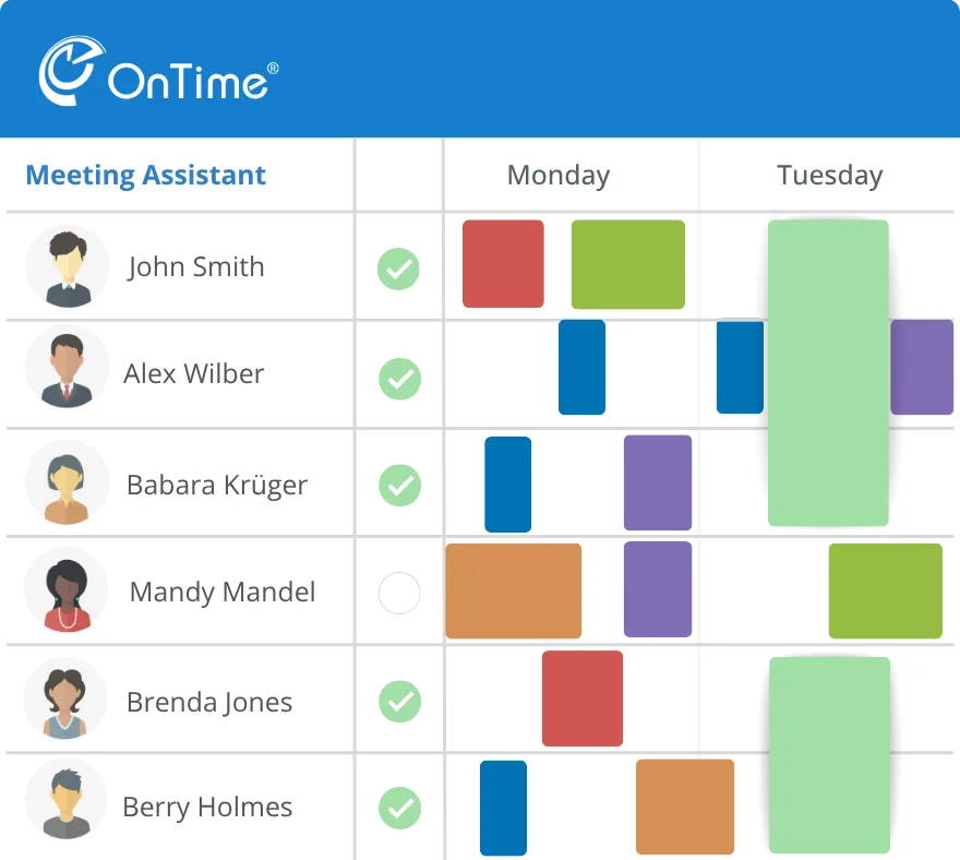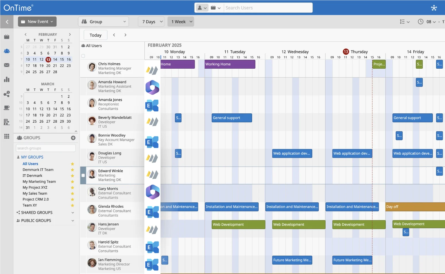 OnTime is designed to scale. There is no practical limit to how many users can be shown in one view, making it suitable for teams, departments, and large organisations.